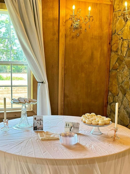 A rustic and elegant event venue built next to The Historic Hogan House. Featuring champagne crystal chandeliers adorn a wood plank ceiling and fieldstone and crystal sconce draped walls. Complete with his and her restrooms and a warming kitchen!